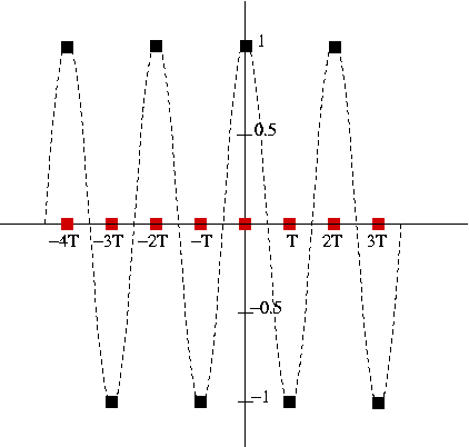 The little black square are the input samples of our sinus, and the little red square are the output samples.